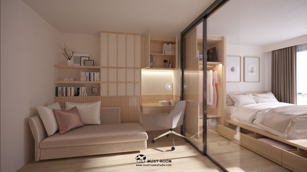 ทำให้ทุกพื้นที่นั้นเกิดประโยชน์ใช้สอยได้อย่างสูงสุด เป็นลักษณะสำคัญของสไตล์ Muji มองหาโซลูชันการจัดเก็บที่ทันสมัยและเรียบง่ายที่ผสมผสานอย่างลงตัวกับการตกแต่งโดยรวมของบ้าน เลือกใช้เฟอร์นิเจอร์ที่มีช่องเก็บของในตัว เช่น เตียงพร้อมลิ้นชัก หรือโต๊ะกาแฟที่มีช่องซ่อน ใช้ชั้นวางและตะกร้าติดผนังเพื่อจัดเก็บให้สวยงาม เป็นระเบียบ